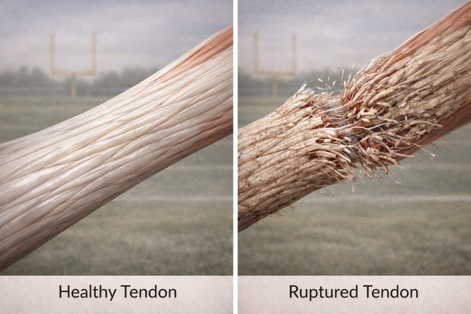 The result is that the players remain trapped in a state of perpetual remodeling, where tissue degradation during practice outpaces structural stabilization at night. Their connective tissue never reaches the density required for elite performance—physically incapable of handling the 2,000+ pounds of peak force generated during an NFL-caliber plant-and-cut.